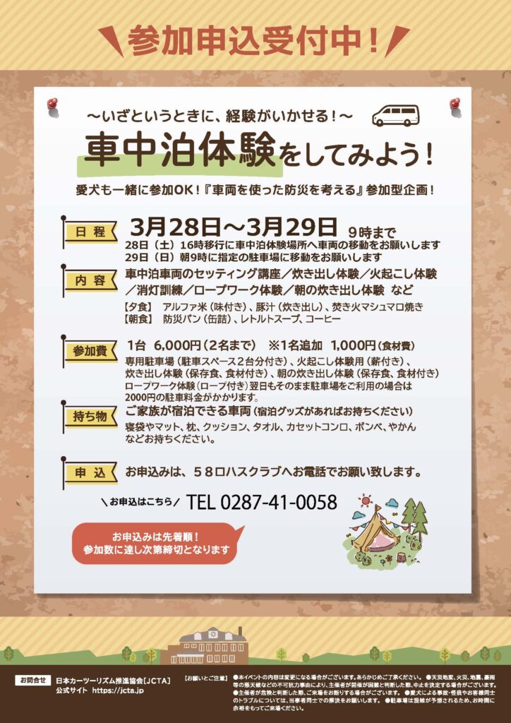 車中泊体験会!ロープワーク体験&車中泊便利グッズ展示も!